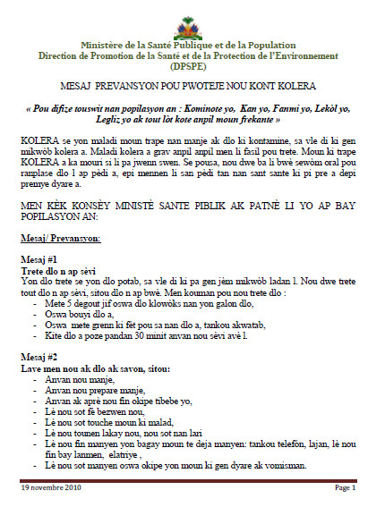 Cravioto A, Lanata C, Lantagne D, and Nair GB (2011). Final Report of the Independent Panel of Experts on the Cholera Outbreak in Haiti. Presented to the Secretary-General of the UN.