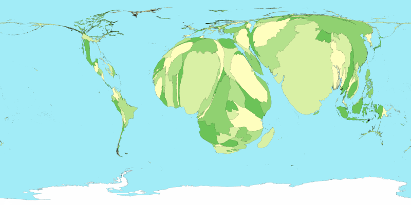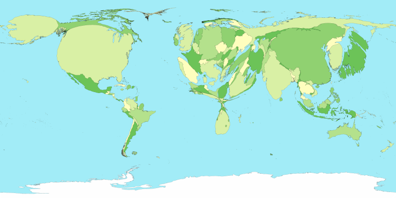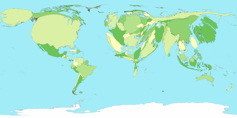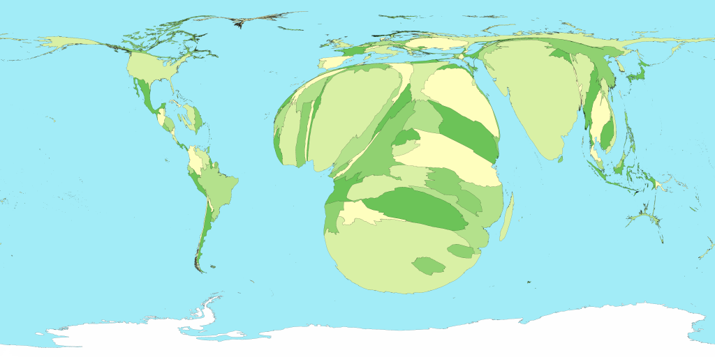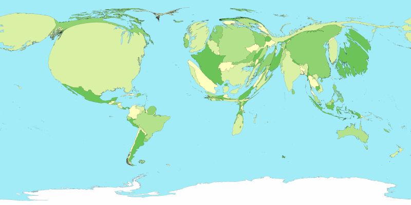 2-minute Gridded Global Relief data set. Data for the other cartograms