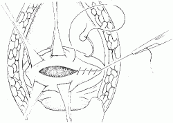 stitch of 0 chromic catgut (or polyglycolic) suture (Fig P-23).