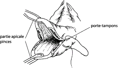 Note :Il peut �tre n�cessaire de faire une laparotomie pour r�parer une d�chirure du col qui s’�tend bien au-del� du d�me vaginal.